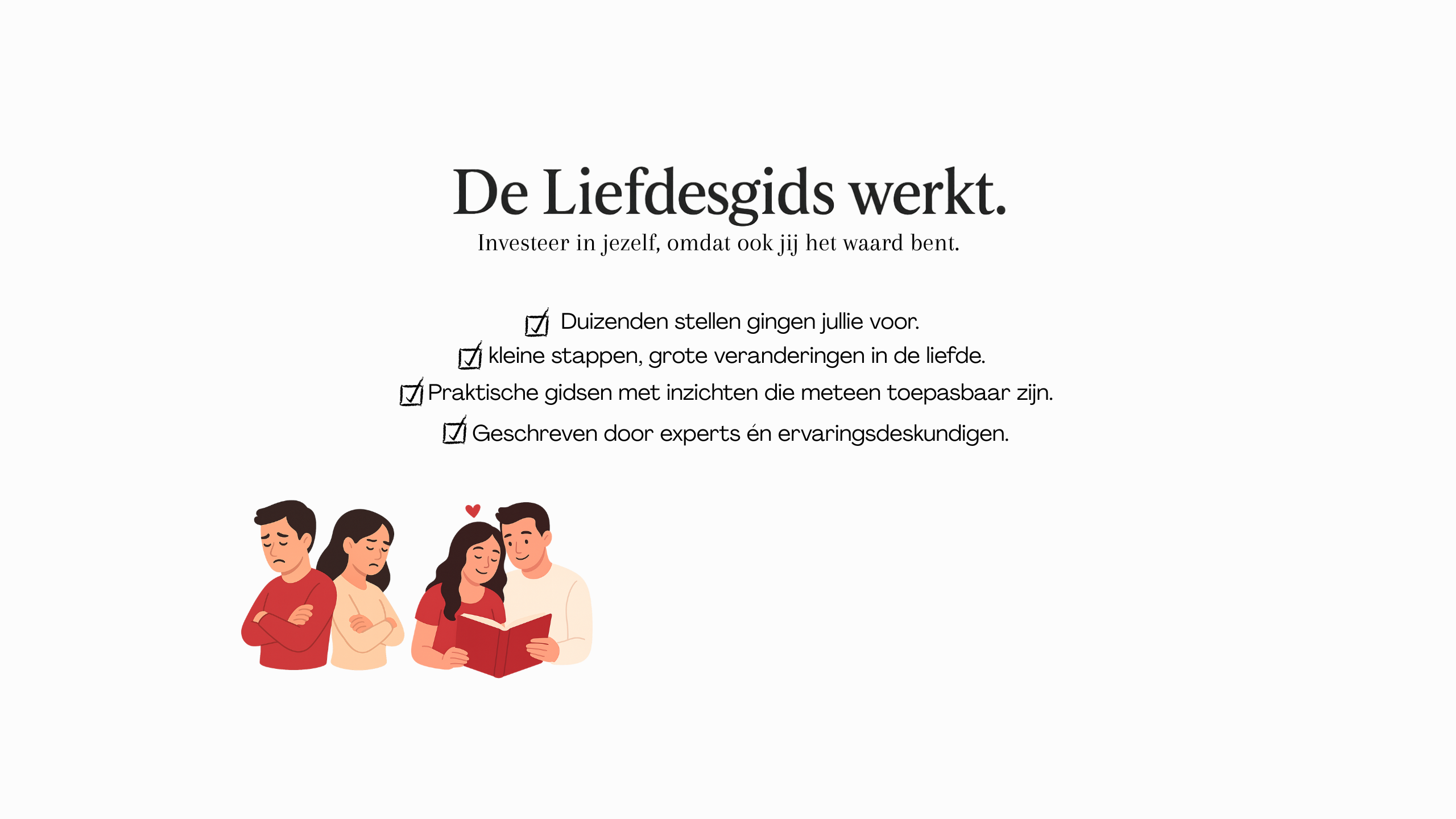 De Liefdesgids gaf me het inzicht dat niet mijn partner, maar mijn eigen oude pijn telkens in de weg zat. Dat besef veranderde alles. En het heeft onze relatie gered.