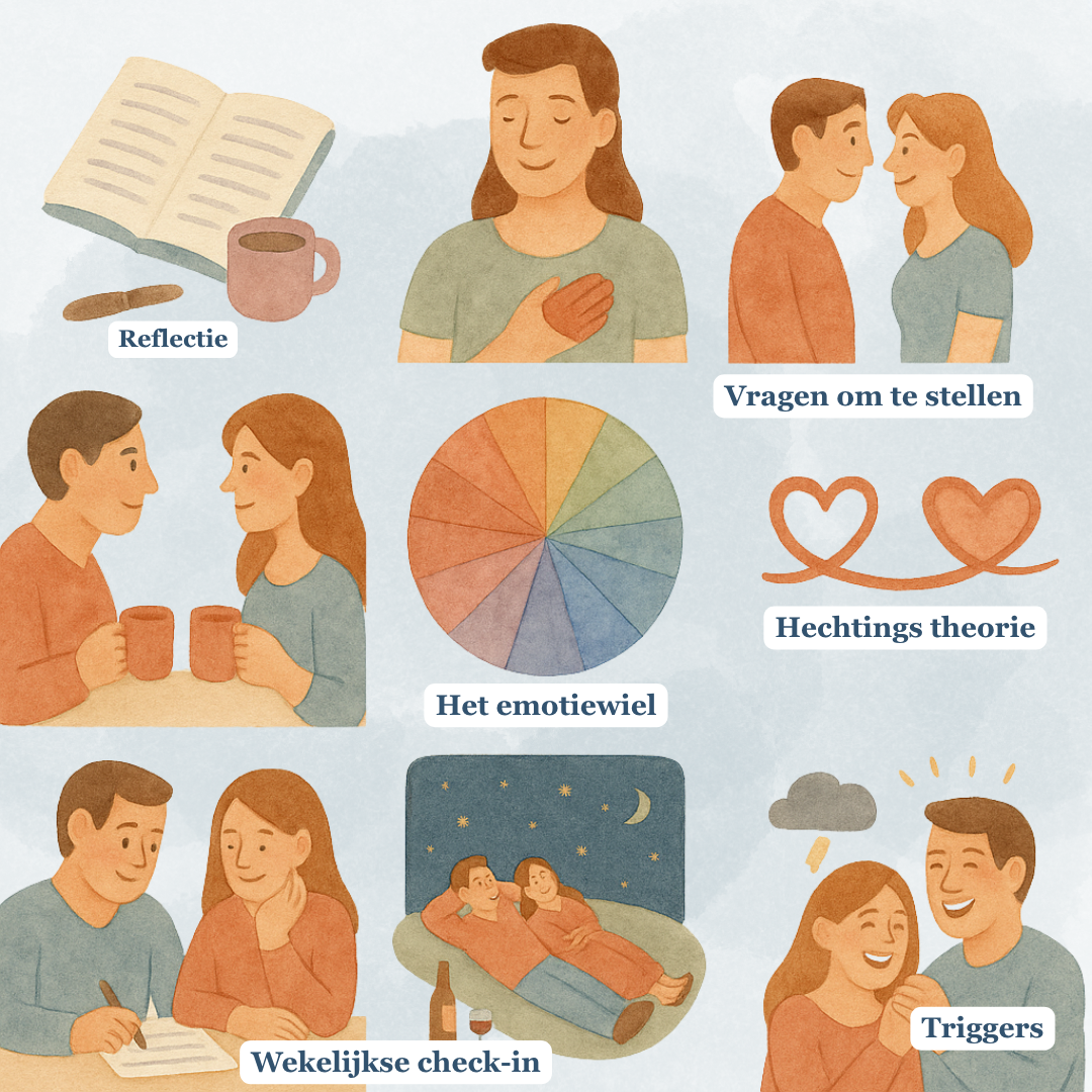 Met behulp van het emotiewiel leer je je gevoelens beter te verwoorden en ontstaat er meer begrip in de relatie.