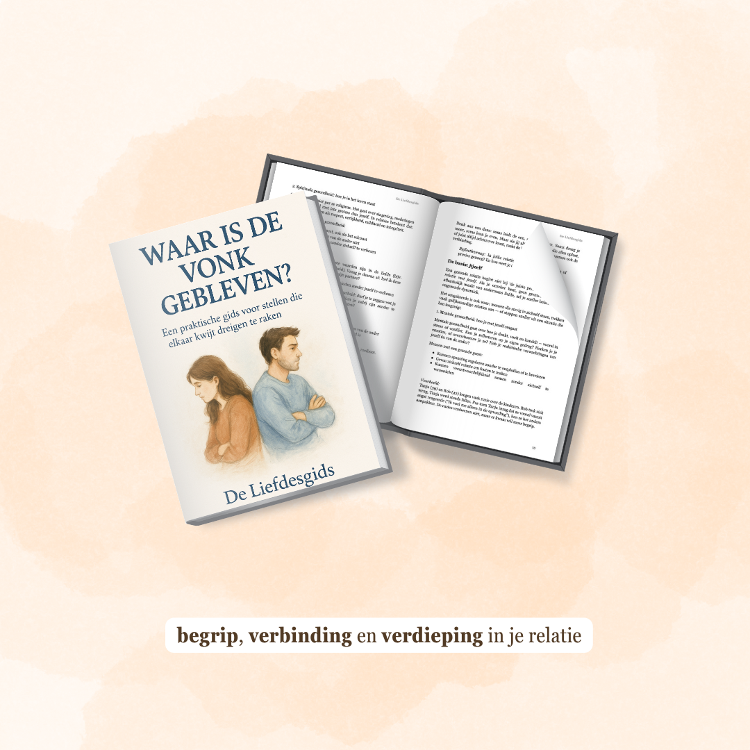 "De herkenning was pijnlijk en tegelijk opluchtend. Geen zweverige adviezen, maar precies waar we mee zaten. We zijn nog steeds samen en daar heeft deze gids echt aan bijgedragen." "De herkenning was pijnlijk en tegelijk opluchtend. Geen zweverige adviezen, maar precies waar we mee zaten. We zijn nog... "De herkenning was pijnlijk en tegelijk opluchtend. Geen zweverige adviezen, maar precies waar we mee zaten. We zijn nog steeds samen en daar heeft deze gids echt aan bijgedragen."